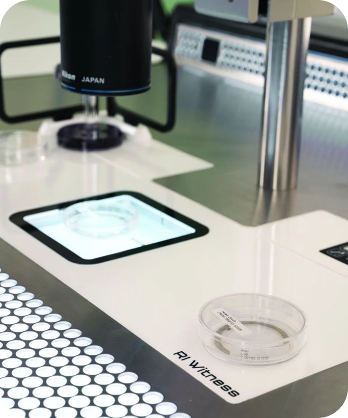 RI Witness es un sistema de testigo electrónico que garantiza la seguridad de las muestras de cada paciente en todo momento. A través de una tarjeta electrónica única e intransferible, y el uso de códigos de barras exclusivos desde el inicio del proceso, el sistema verifica automáticamente que los óvulos, espermatozoides y embriones utilizados se vinculen de forma precisa a cada paciente.